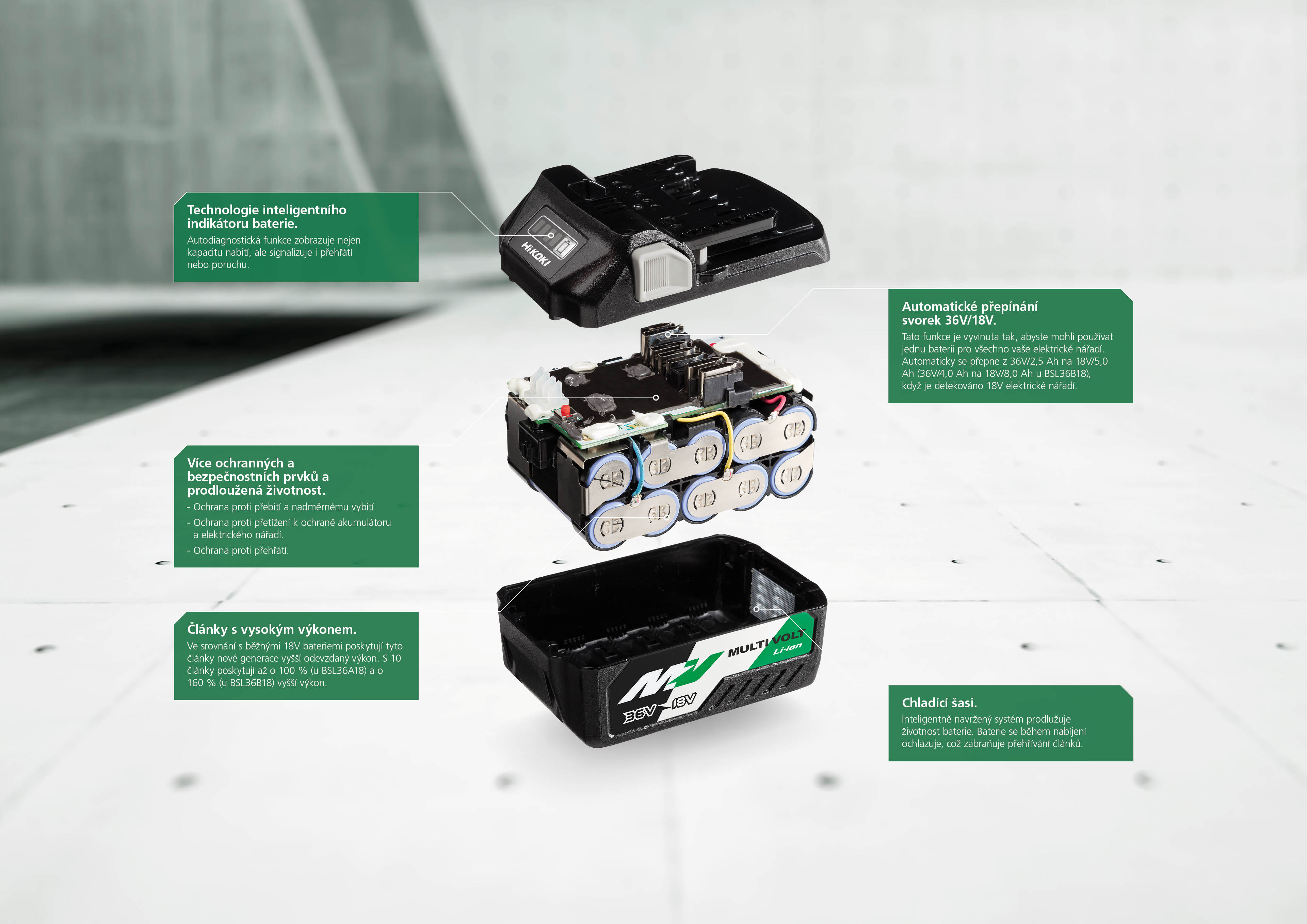 Každá součást MULTI VOLT baterie si prošla důkladným vývojem. To zahrnuje i vysoce inovativní design struktury lithium-iontového jádra, které je základem této generace vysokého odevzdaného výkonu. Vše probíhá bez namáhání nebo zahřívání součástí elektrického nářadí. Díky našemu nabíjecímu systému Rapid Smart s chladícím ventilátorem vydrží baterie podstatně déle.