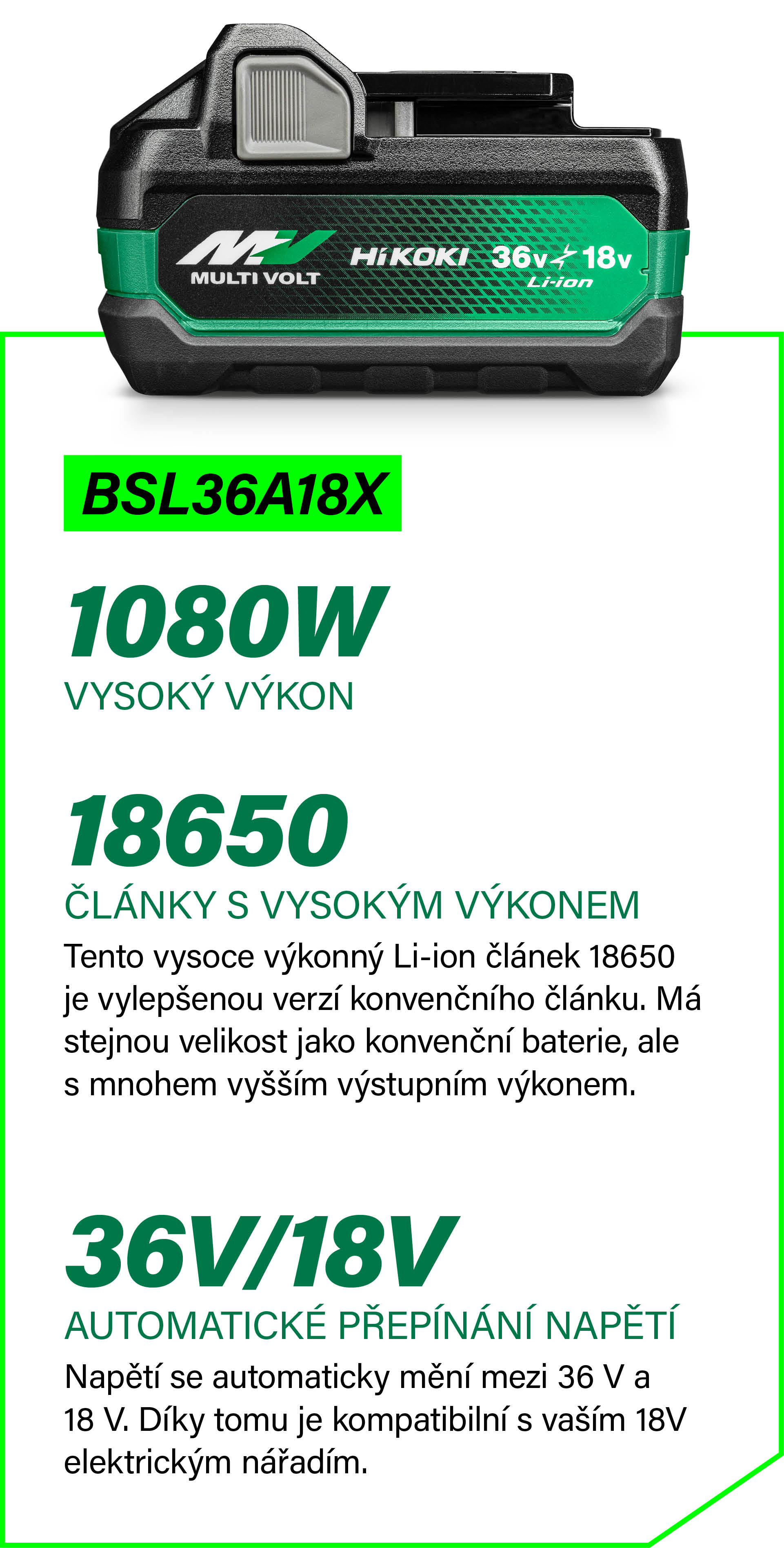 Naše inovativní baterie MULTI VOLT napájí širokou škálu akumulátorového nářadí. Tento akumulátor je navíc kompatibilní s 36V i 18V elektrickým nářadím. Nyní můžete řezat, brousit, vrtat, sekat, foukat, řezat a stříhat se stejným výkonem jako s kabelovým elektrickým nářadím, ale s maximální svobodou práce, kdekoli chcete.