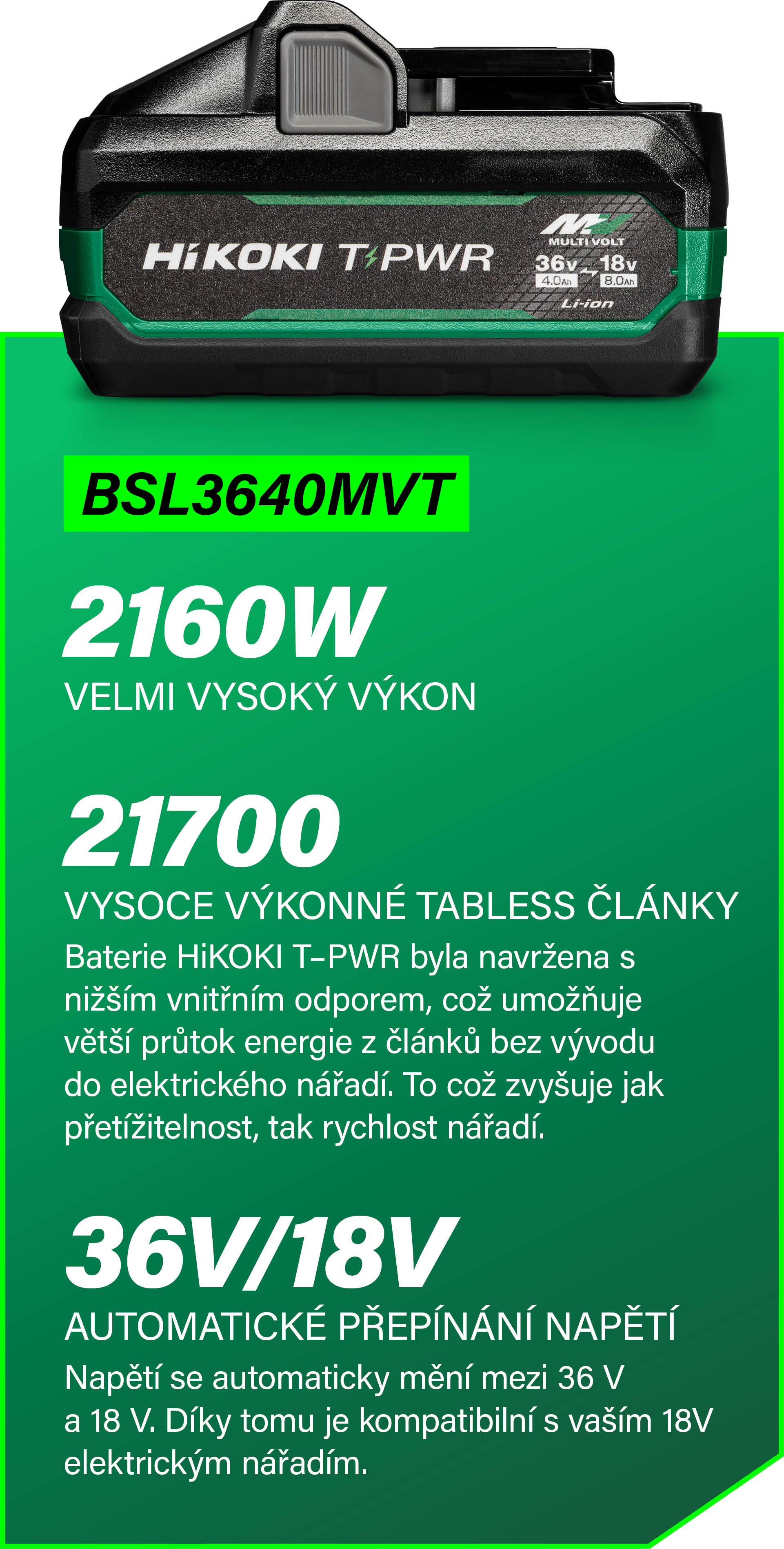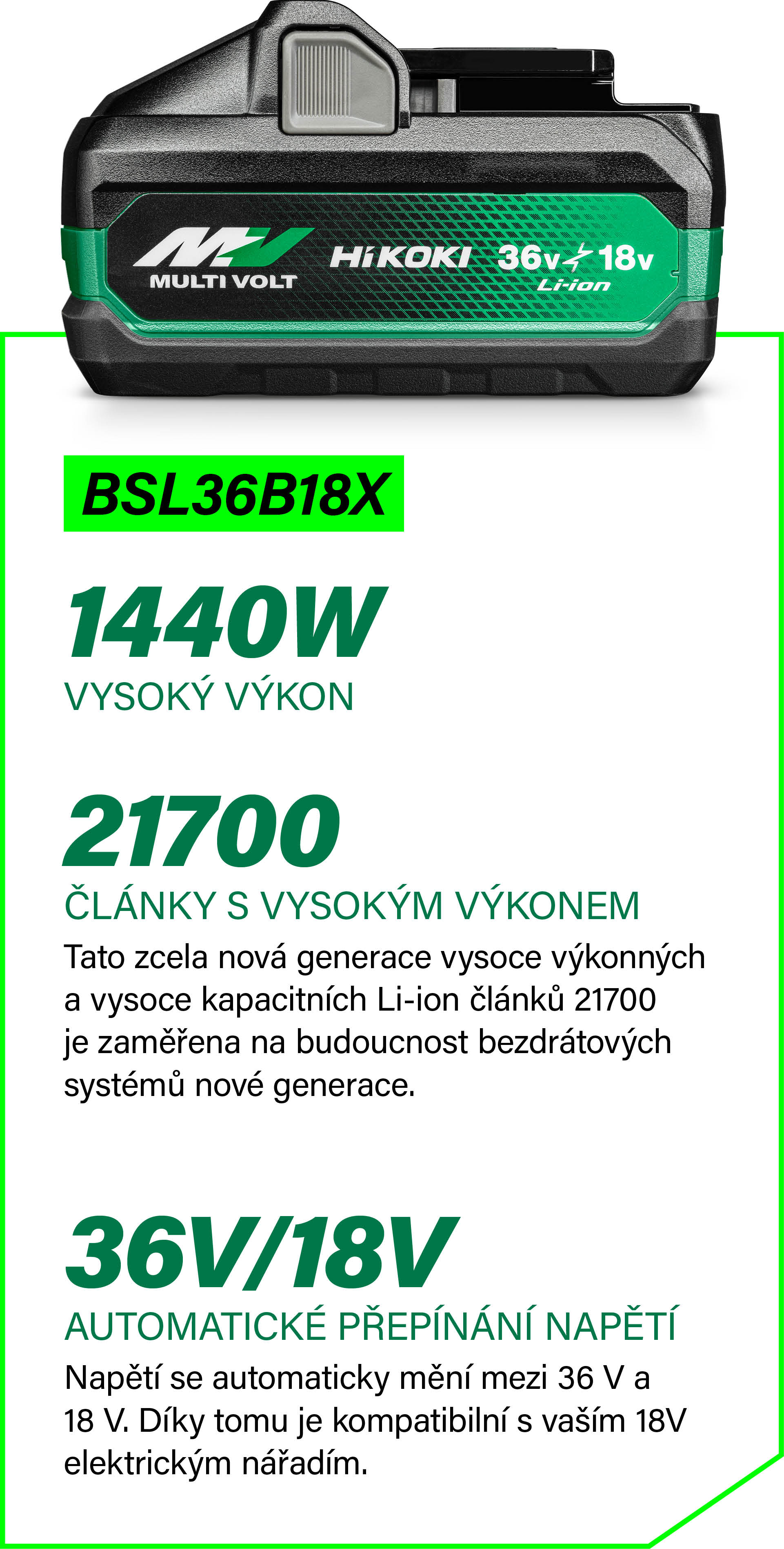 Baterie MULTI VOLT, spárované s nářadím MULTI VOLT 36V, nabízejí bezkonkurenční akumulátorový výkon v rozsahu od 1 080 W do 1 440 W, podle toho, jakou baterii používáte.