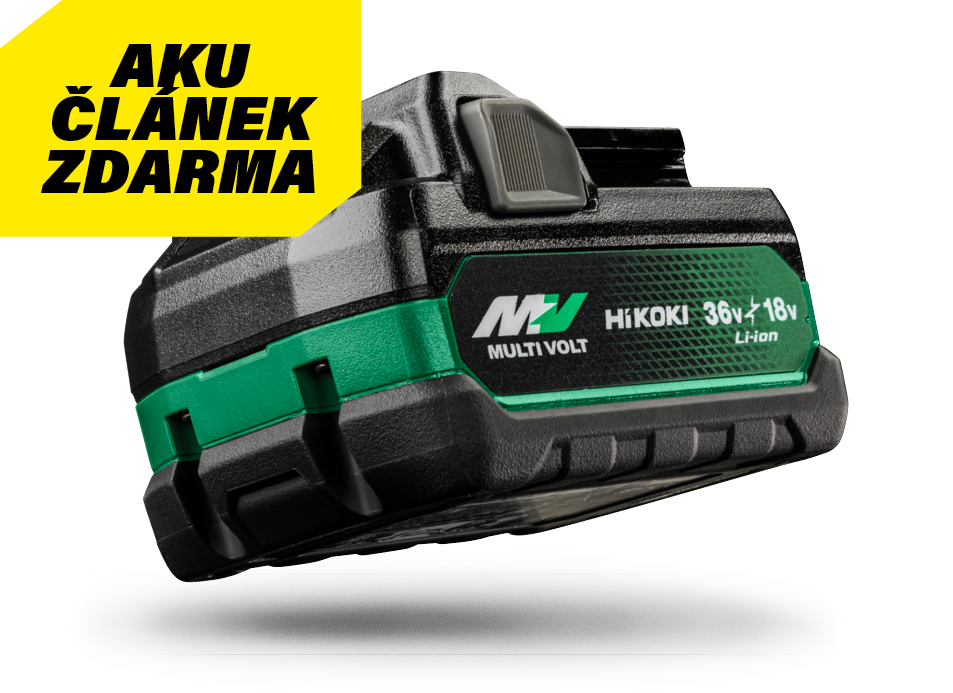 * Tato akce platí pro vybrané nářadí HiKOKI (akční výrobky), které je zakoupeno a zaregistrováno v průběhu trvání akce od 1.10.2025 do 31.3.2026 včetně. Obdržíte akumulátorový článek MULTI VOLT BSL36A18X zdarma - až do vyčerpání zásob - za předpokladu, že