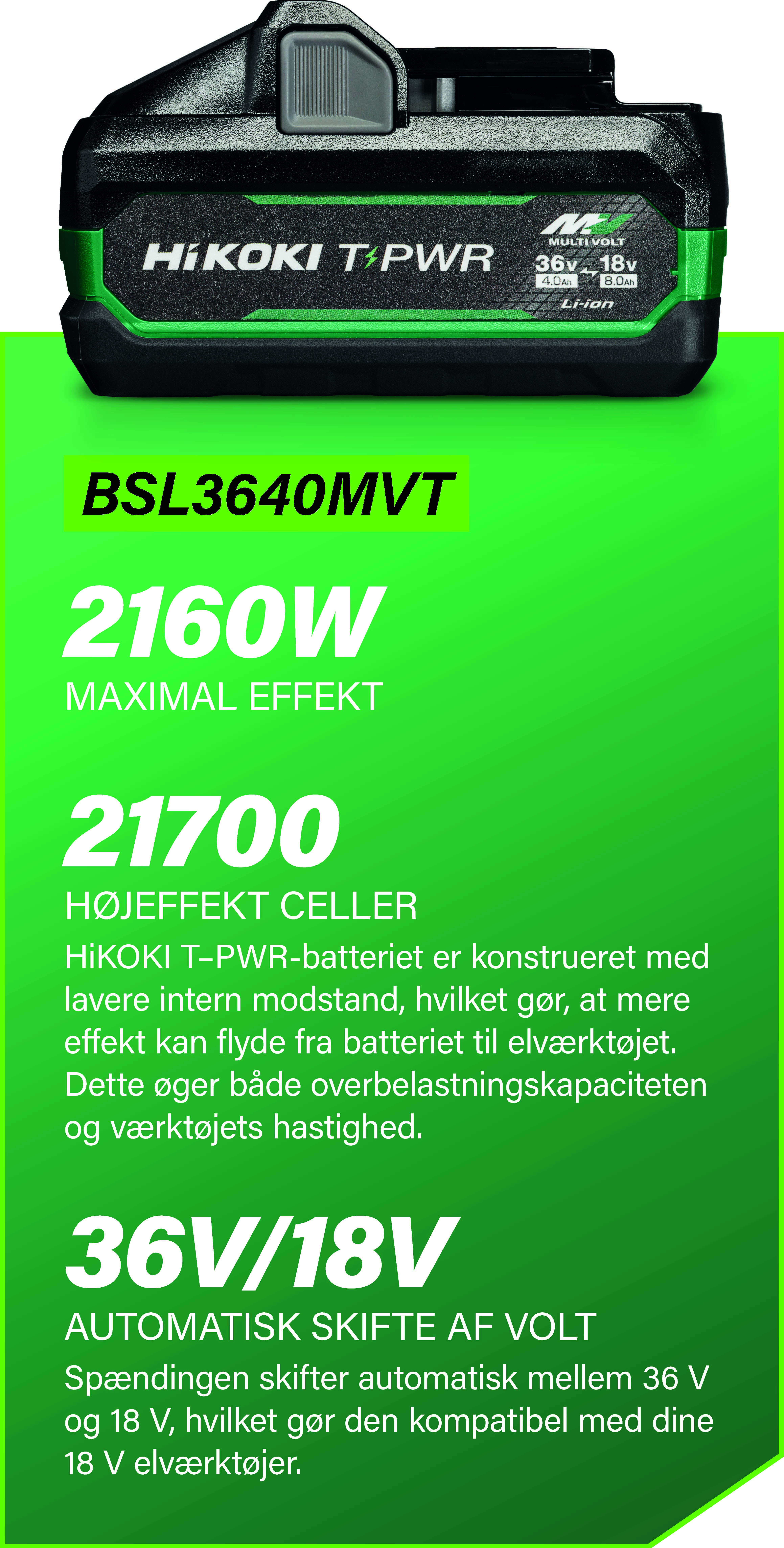 Med HiKOKI hurtigoplader kan du nu oplade dit batteri inden for kun 32 minutter (BSL36A18). Det intelligente kølesystem beskytter dit batteri mod overopvarmning, så det holder længere.
