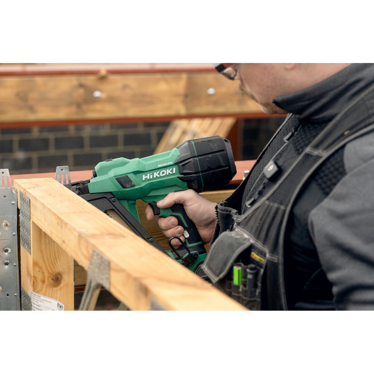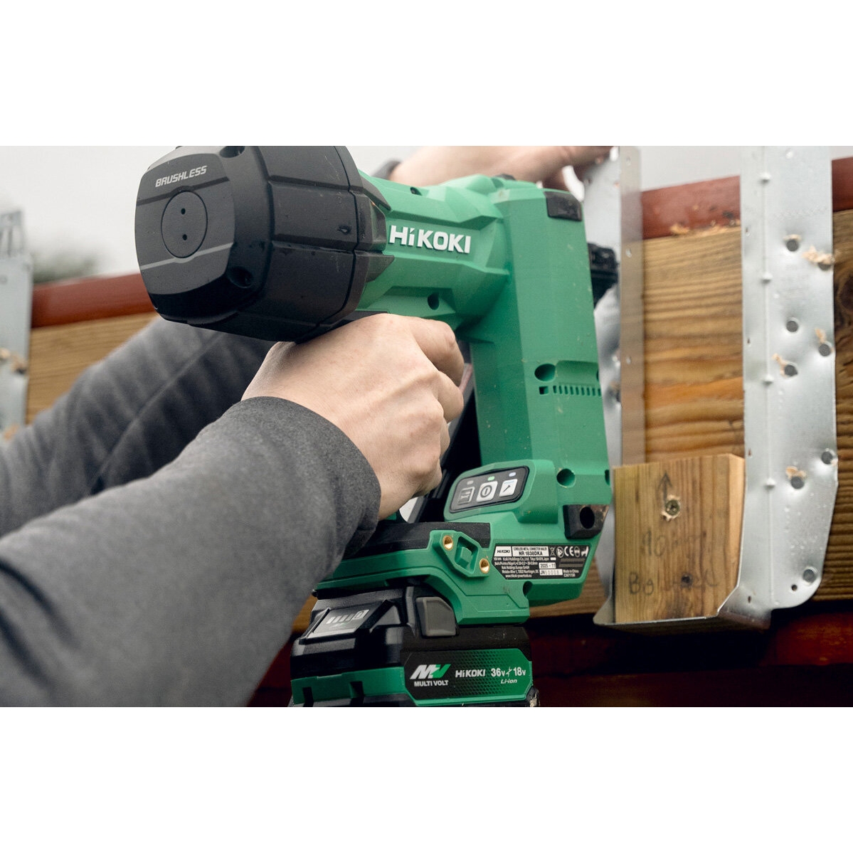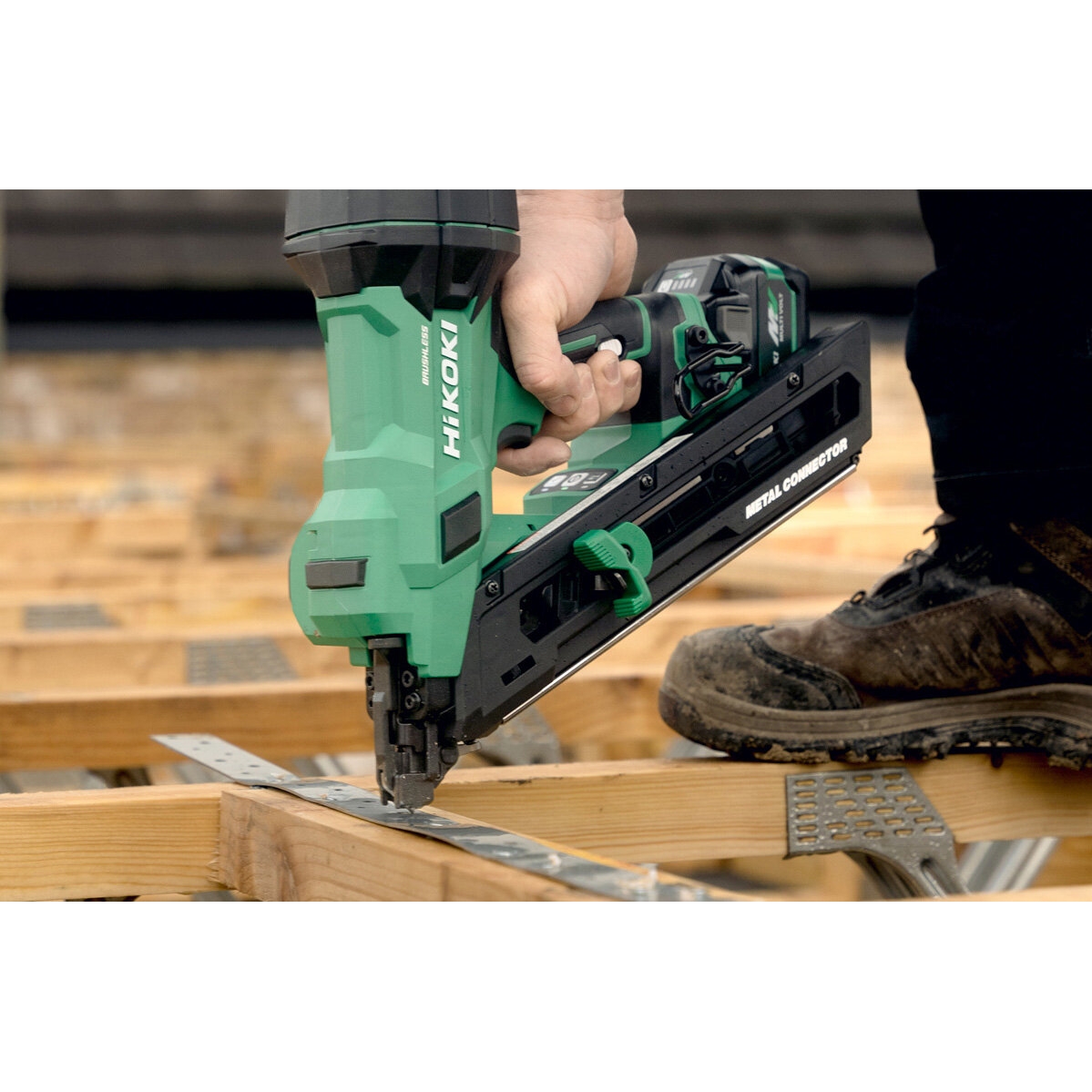 Lightest 18V brushless metal connector nailer for twisted nails up to 38 mm