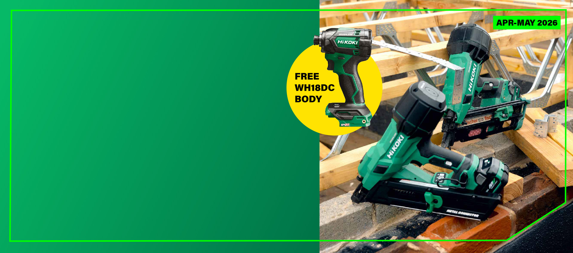 * This promotion is valid for selected HiKOKI tools (Promotional Products) which are purchased and registered during the promotional period from 01.04.2026 up to and including 31.05.2026. You will receive a WH18DC 18V Impact Driver (Body) for free - while supplies last - provided.