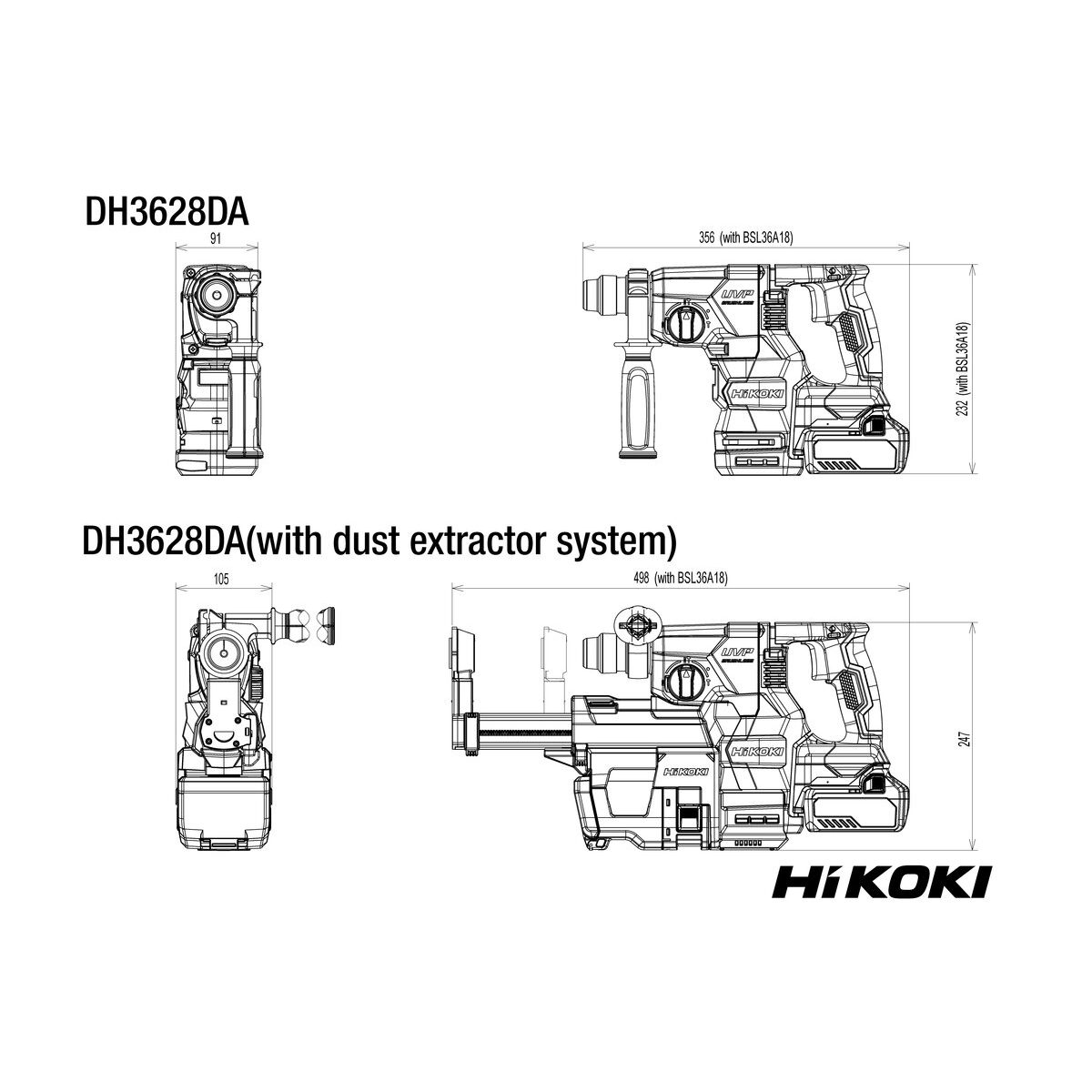 36 V Brushless 3-mode 3.2 J SDS-Plus rotary hammer with User Vibration Protection (UVP) for drilling into concrete up to 28 mm